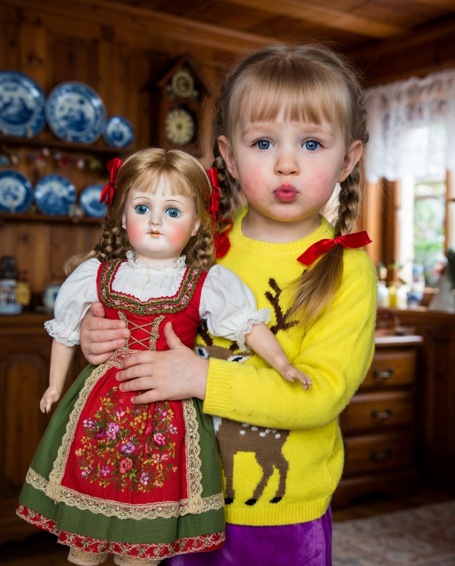 „Sie ist wunderschön!“, rief Leni und drückte die Puppe fest an sich. „Sie hat sogar ein Baby! Mama, schau mal!“