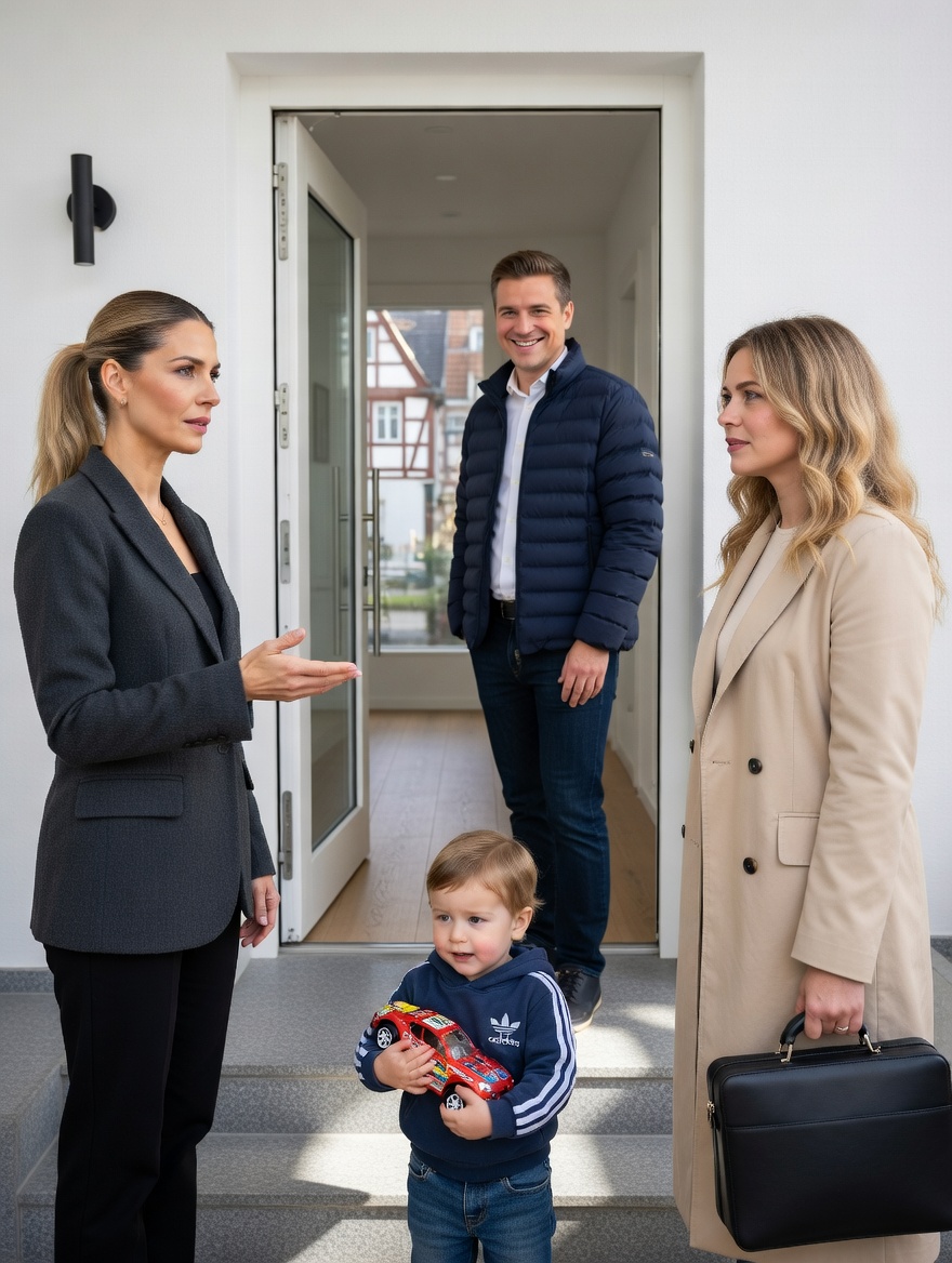 Die Hitze stand drückend zwischen den Wänden. Ich hörte ein Auto vor dem Haus halten. Ich dachte, es sei ein Lieferant. Ich öffnete die Tür… Und ich sah ihn zuerst. Älter. Selbstsicherer, als er es verdient hätte. Neben ihm eine blonde Frau. Etwa dreißig Jahre alt. Mit einem mittelgroßen Koffer. Und zwischen ihnen… an einen Plastiklaster geklammert, ein zweijähriger Junge mit dunklem Haar. „Isabella, komm rein und lass uns in Ruhe reden“, sagte Ferdinand, als wollte er gerade eine Küchenrenovierung vorschlagen. „Das ist mein Sohn. Sein Name ist Lukas. Das ist Karolin. Die Dinge haben sich geändert. Und du wirst dich damit abfinden müssen.“ Als ich sie dort stehen sah… lächelte ich nur. Ich traf eine Entscheidung, die Ferdinand sofort klarmachte, dass ihm von diesem Moment an nichts mehr gehörte… Und was er gleich miterleben würde, sollte sein Leben für immer verändern.