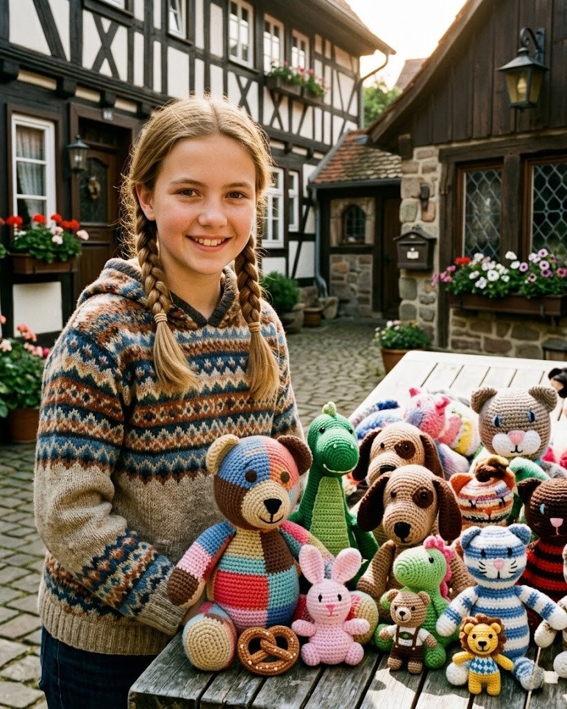 Sie lächelte. „Ich habe noch mehr gemacht, schau mal.“ Sie holte einen Stapel hervor: Katzen, Hasen, sogar eine Schildkröte mit einem etwas schiefen Panzer. „Glaubst du, dass die jemand anderes haben möchte?“ „Ich glaube, du wärst überrascht, wie viele Leute die haben wollen“, antwortete ich und dachte daran, wie sie Frau Schuster immer einen Hasen oder den Nachbarn eine Katze hinterließ.