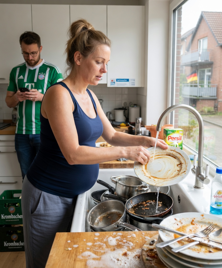 Ihr Bauch wurde jede Woche größer. Dennoch half sie weiterhin bei allem. Kochen, wenn meine Schwestern zu Besuch kamen. Den Tisch bedienen. Danach saubermachen. Manchmal sagte ich ihr, sie solle sich ausruhen. Aber sie sagte immer das Gleiche. „Es ist okay, Lukas. Es dauert nur ein paar Minuten.“ Aber diese paar Minuten wurden oft zu Stunden.