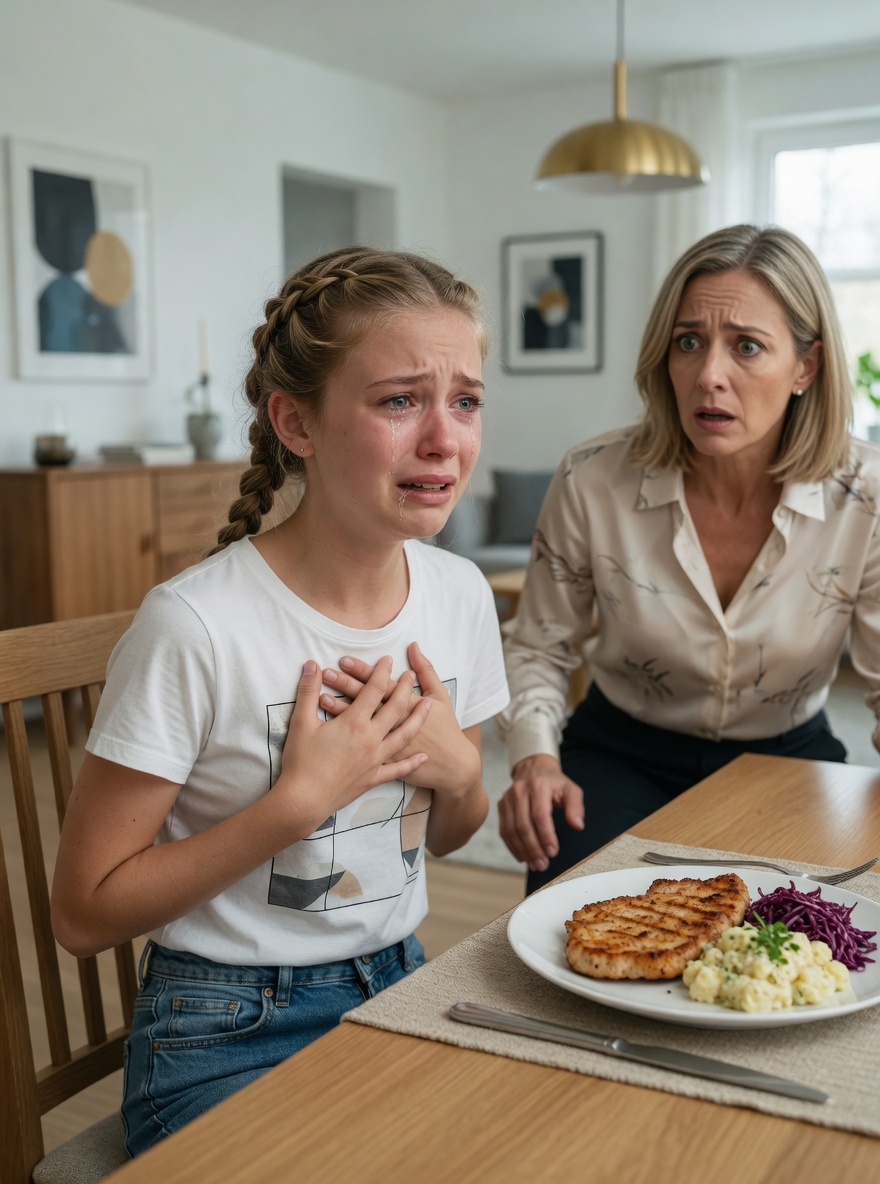 Als ich Lukas heiratete und mit ihm nach München zog, kam seine fünfjährige Tochter Leni dauerhaft zu uns. Sie war ein schüchternes Mädchen mit großen, dunklen Augen, die alles mit einer Mischung aus Neugier und Vorsicht zu beobachten schienen. Vom ersten Tag an bemerkte ich etwas Seltsames: Zu den Mahlzeiten aß sie nie etwas. Ich kochte Spätzle, Kartoffelauflauf, Linseneintopf, Frikadellen—Gerichte, die jedes Kind normalerweise mit Genuss essen würde. Aber sie bewegte nur ihre Gabel, senkte den Blick und murmelte: „Entschuldige, Mami… ich habe keinen Hunger.“