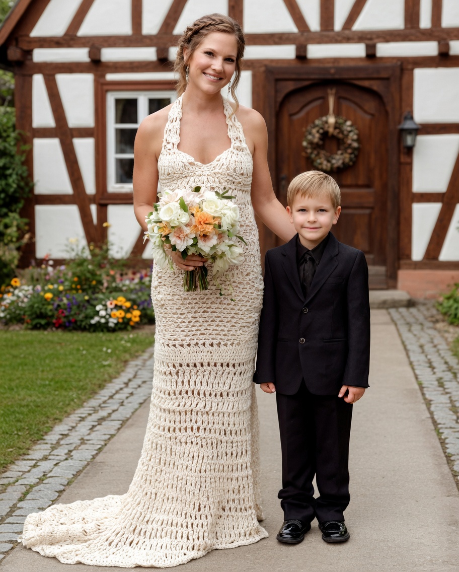 „Mama“, sagte er mit brüchiger Stimme, „ich habe etwas für dich gemacht.“ Vollständig von Hand gehäkelt, war das weiche, elfenbeinfarbene Garn zu den zartesten Mustern geformt, die ich je gesehen hatte. Das Oberteil hatte winzige, filigrane Blumen, die Wochen gedauert haben mussten. Der Rock fiel wie echter Stoff, mit Schichten, die das Licht aus jedem Winkel anders einfingen. Die Ärmel waren halbtransparent, elegant und unvorstellbar schön. „Das hast du gemacht?“, flüsterte ich und berührte es, als könnte es verschwinden. Lukas nickte eifrig. „Ich habe auf YouTube neue Maschen gelernt. Ich habe Hunderte von Videos gesehen. Ich habe mein ganzes Taschengeld für das Garn ausgegeben, die gute Sorte, die nicht kratzt. Ich habe dein altes Kleid für die Maße benutzt.“ „Das hast du gemacht?“, flüsterte ich und berührte es, als könnte es verschwinden. Er holte tief Luft. „Ich wollte, dass du etwas Besonderes hast, Mama. Etwas, das sonst niemand auf der Welt hat.“ Bei dem letzten Wort brach seine Stimme. Ich zog ihn in meine Arme und weinte in sein Haar. „Gefällt es dir?“, fragte er dumpf an meiner Schulter. „Gefallen? Schatz, ich liebe es. Ich werde das an meinem Hochzeitstag tragen. Ohne Frage. Und ich bin so stolz auf dich, dass ich fast platze.“