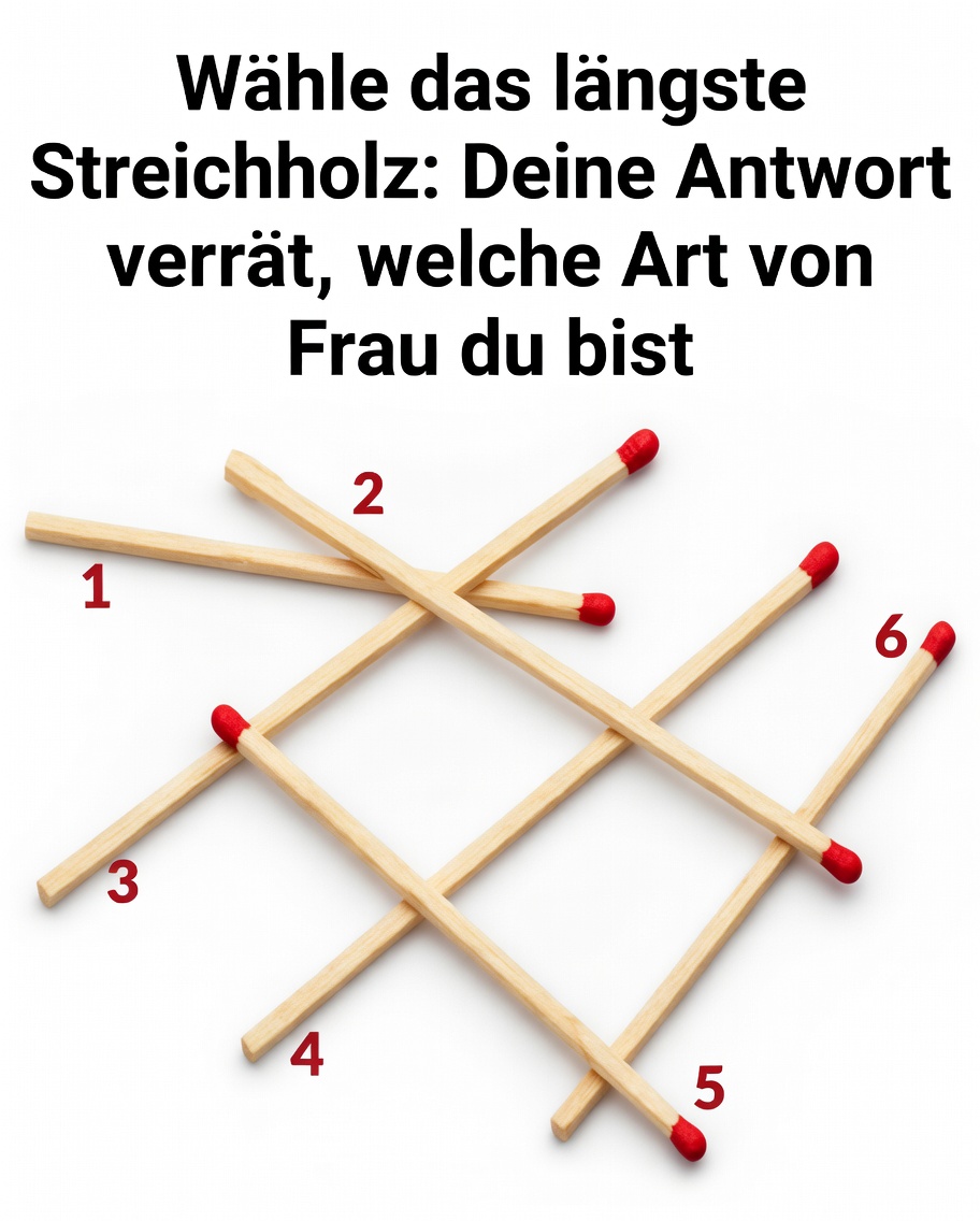 Auf den ersten Blick wirkt es wie ein simples visuelles Rätsel: Sechs verstreute und überlappende Streichhölzer, markiert mit den Nummern 1 bis 6. Die Aufgabe ist einfach: Wähle das längste aus.